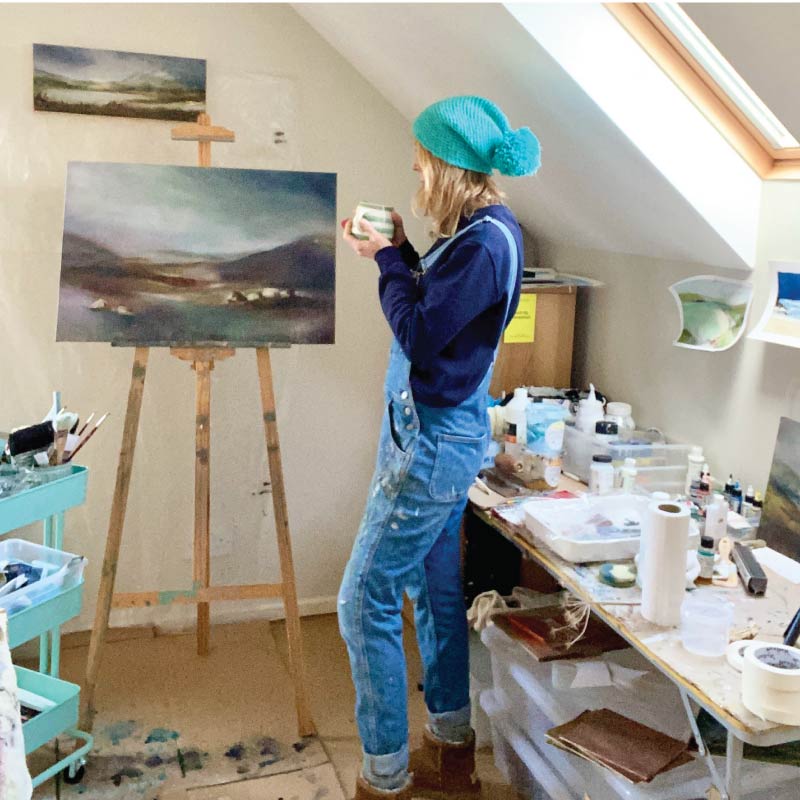 As a child, I naturally gravitated towards creativity – with a love for textiles, art and creative writing during my school days. I went on to study fashion and textiles at degree level and followed with a career in the clothing industry. Whilst taking a break to raise my young son, I rediscovered my childhood passions and trained in further design disciplines, eventually working on a freelance basis in graphics and surface pattern design. However, as so much work was produced digitally, I missed the simplicity and freedom of creating by hand, and so several years ago returned to painting - inspired by the landscapes and feelings I encountered on those long countryside dog walks.
